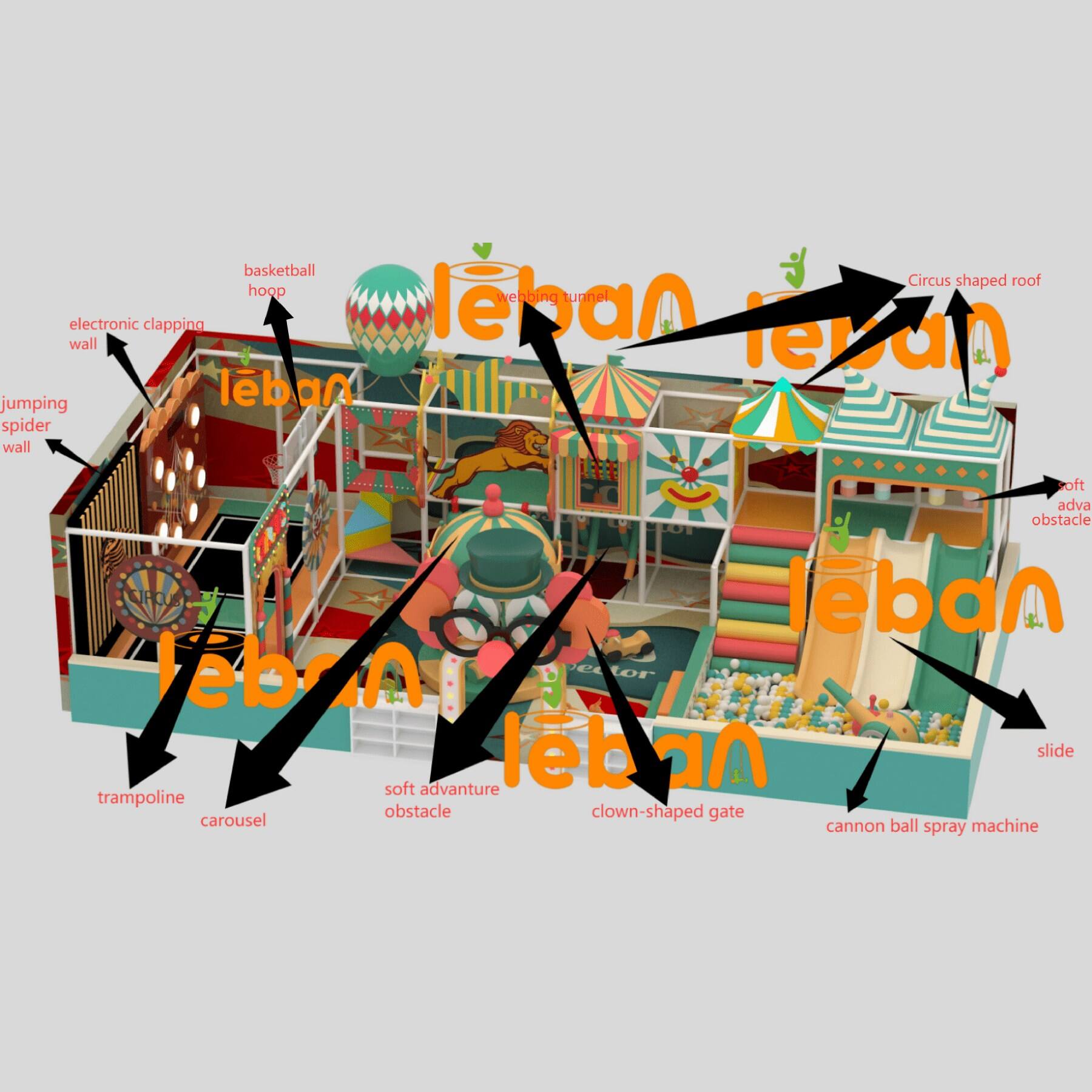 This is a joyful indoor playground area! Here, you’ll find three super-exciting small slides that let kids feel the thrill of speeding down. There are also all kinds of adventurous soft obstacles, with exciting challenges waiting for children to conquer. The space cleverly incorporates circus elements, doubling the fun and ramping up the excitement. Besides, there’s a delightful merry-go-round and a really fun ball-blowing cannon—every corner is filled with surprises, perfect for kids to have a great time! Come and let the little ones enjoy themselves to the fullest in this wonderful indoor playground.