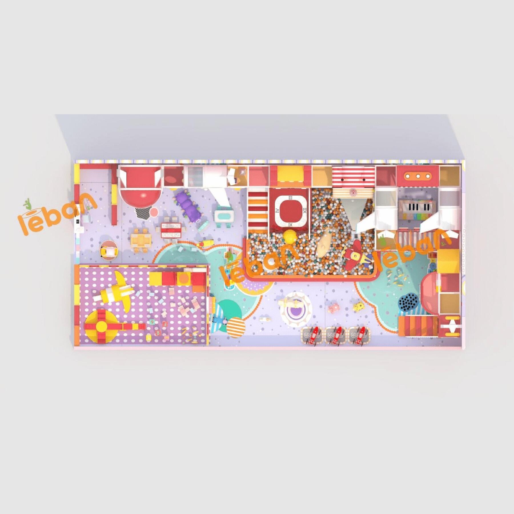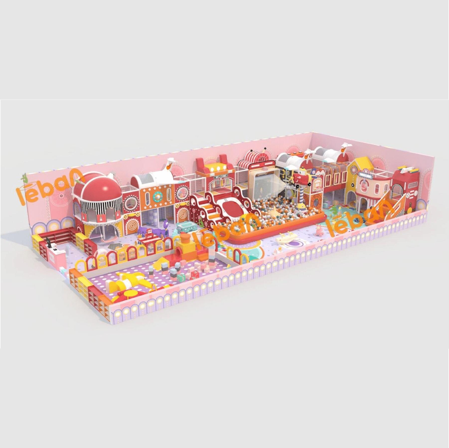 Plongez dans cette aire de jeux pour enfants aux tons roses, un univers vibrant inspiré d'avions et de trains rouges ! Commencez par l'armoire à chaussures, puis laissez libre cours à la créativité autour de la table de blocs de construction. Glissez sur des toboggans en forme d'avion, tandis que le toboggan en forme de train ajoute des frissons sur le thème ferroviaire. Le bac à balles est une mer de divertissement, complété par un distributeur de balles pour des jeux ininterrompus. Les jeux de projection allient magie numérique et amusement physique, et les tunnels invitent aux explorations secrètes. Grimpez dans la tour de guet pour une vue panoramique ! Chaque recoin, des structures charmantes aux zones interactives, stimule l'imagination. C'est ici que les petits aventuriers vivent leurs rêves d'avions et de trains, créant des souvenirs dans ce paradis rose.